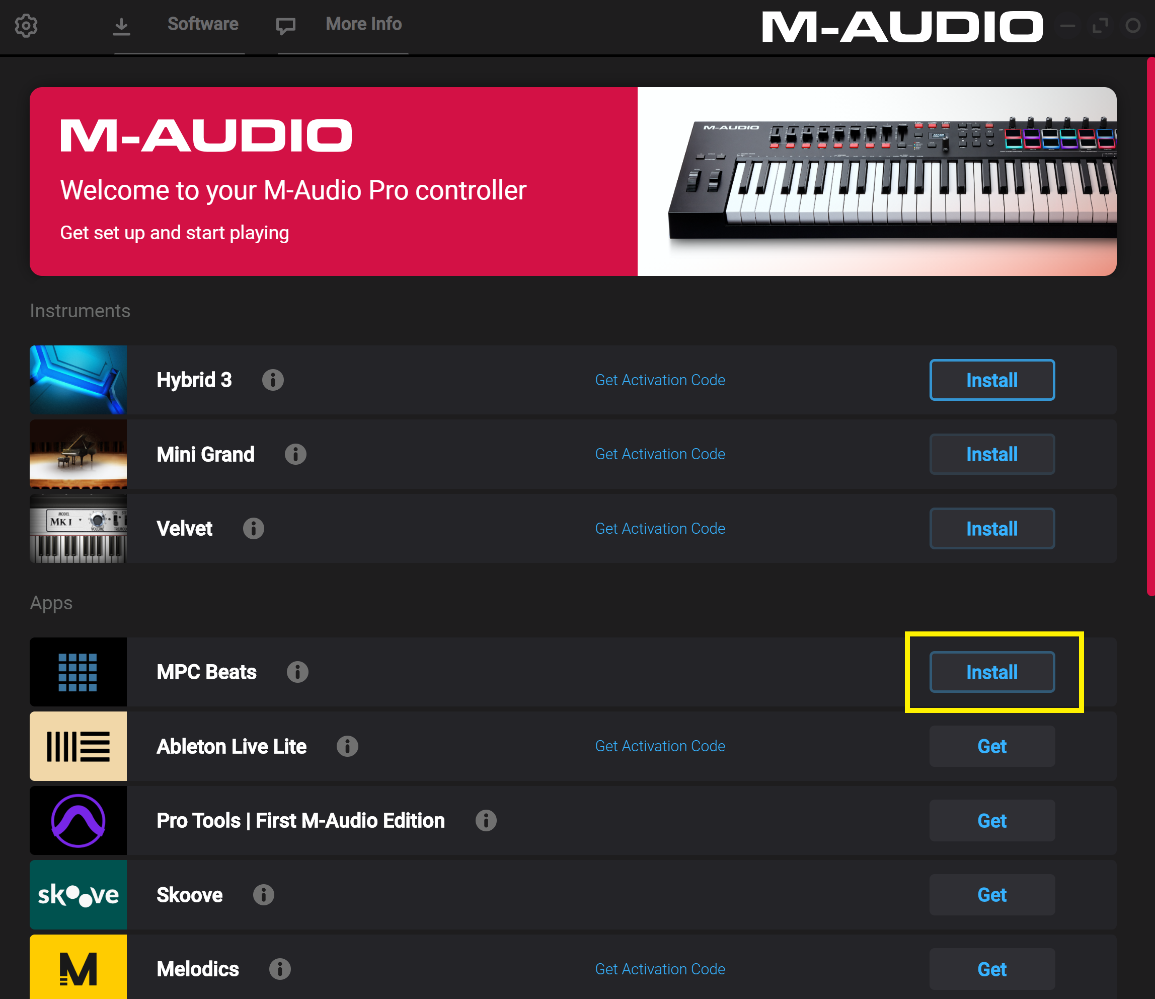 一些硬件音频设备会送软件,比如M-Audio的一些声卡和键盘会直接送全功能版的MPC Beats